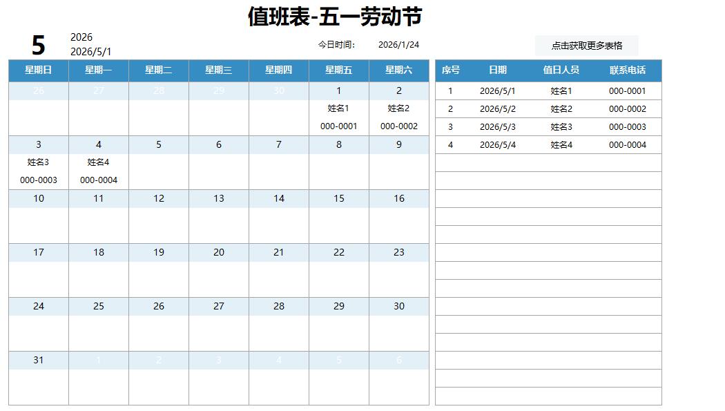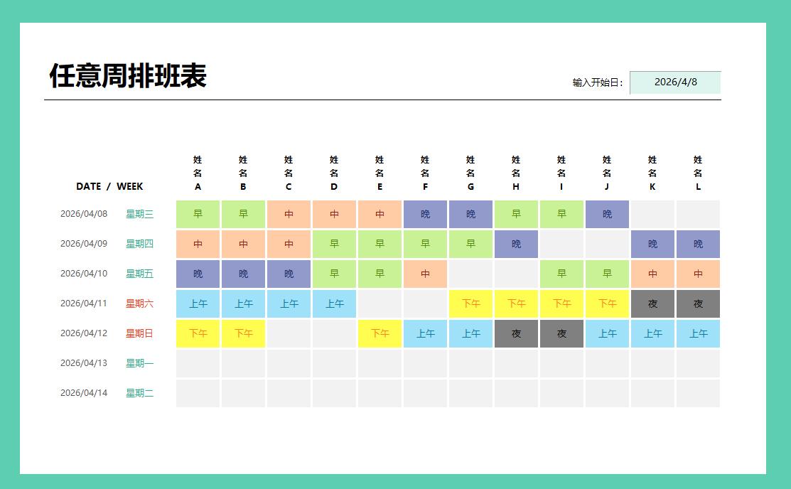 员工排班表员工值班表假期表excel图表公司企业工厂自动排班表格