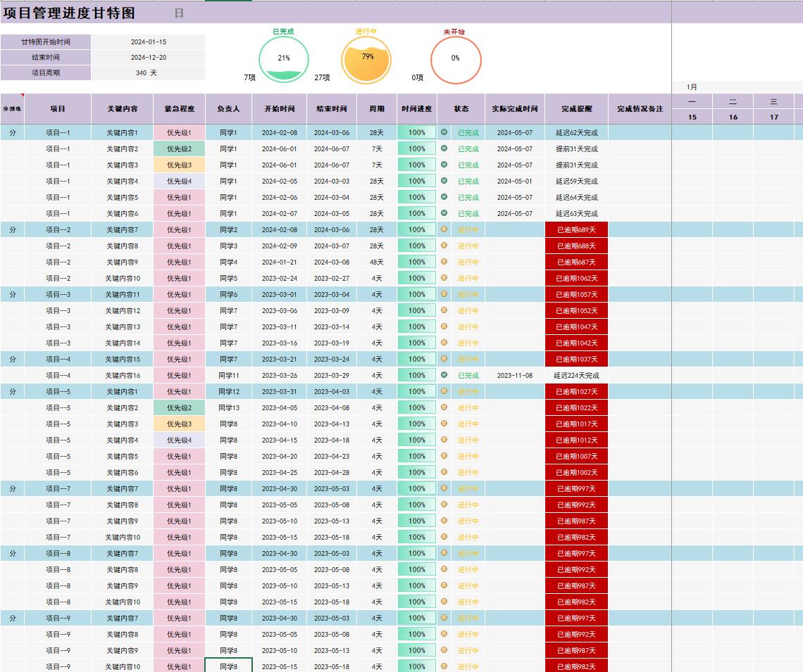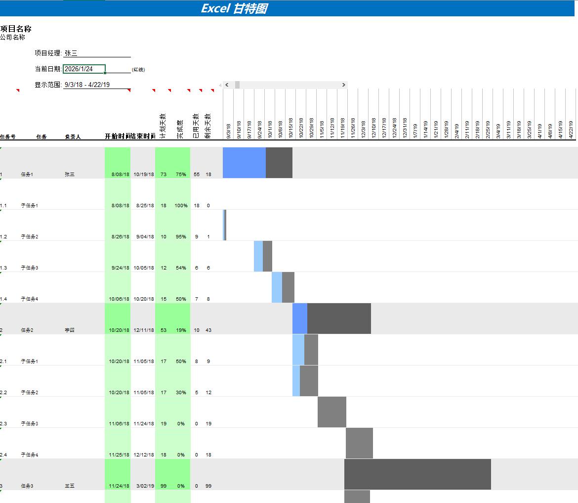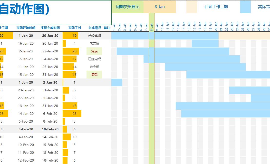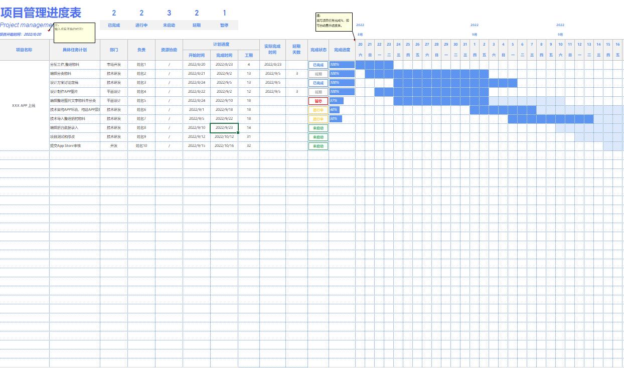 甘特图Excel项目管理日程工程项目施工作计划横道图