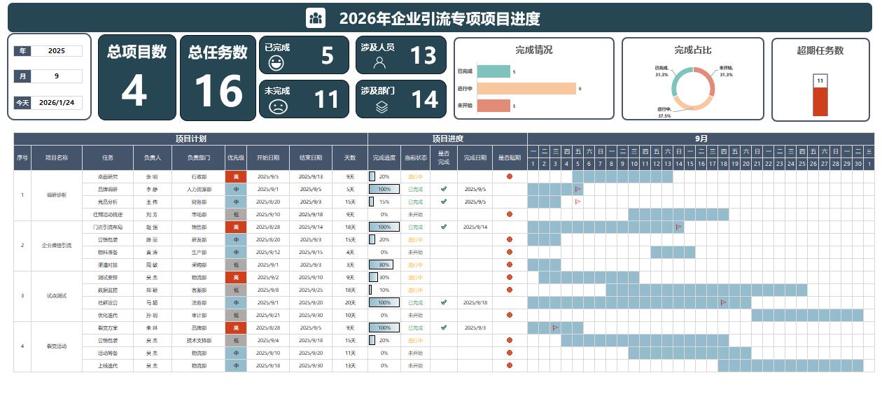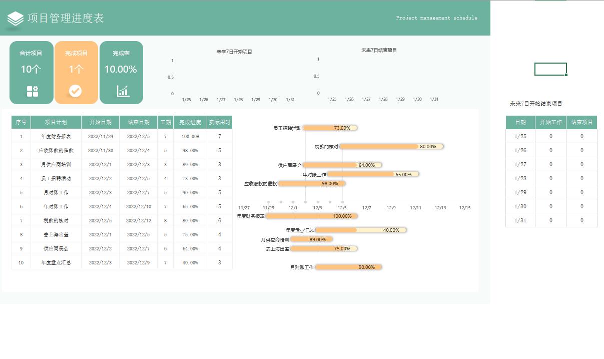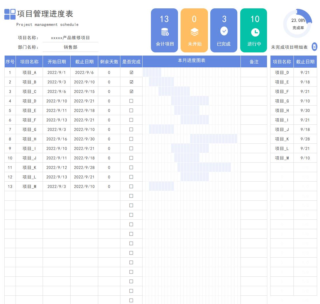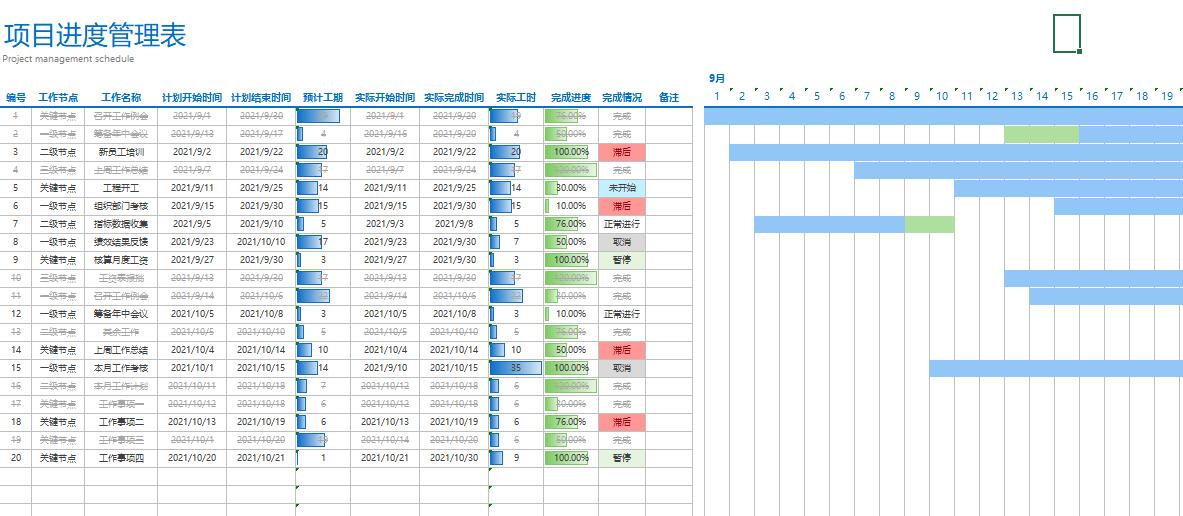 甘特图Excel项目管理日程工程项目施工作计划横道图