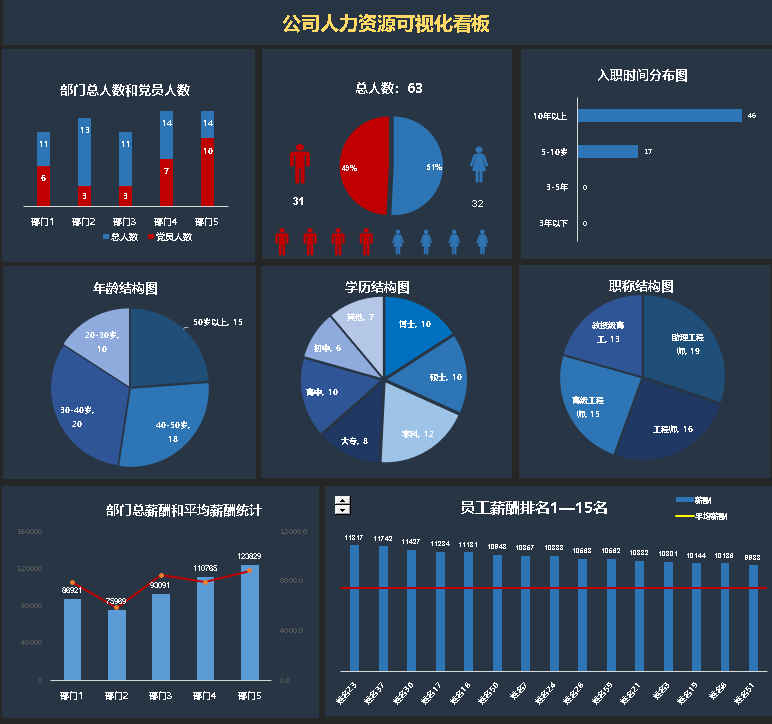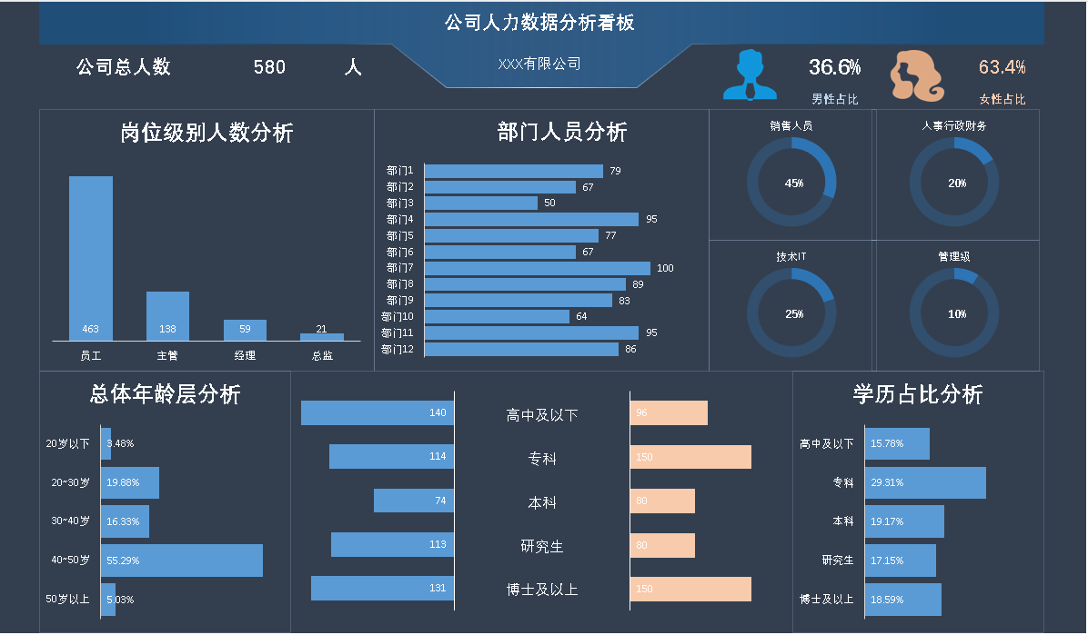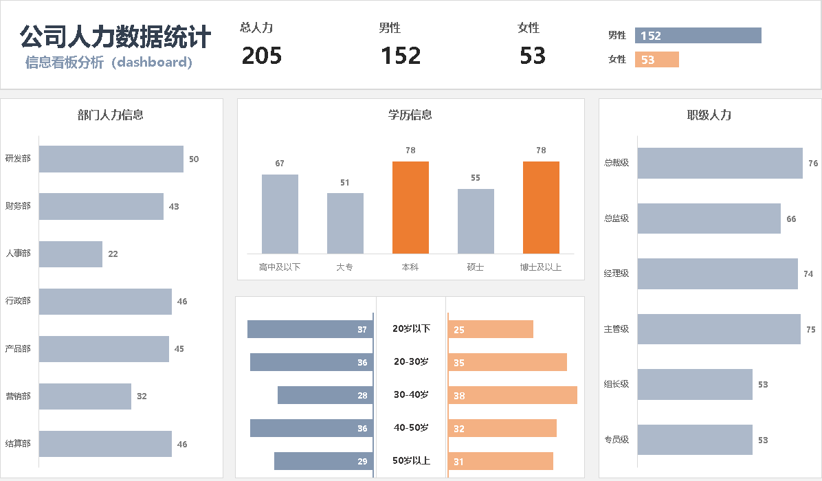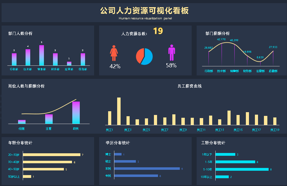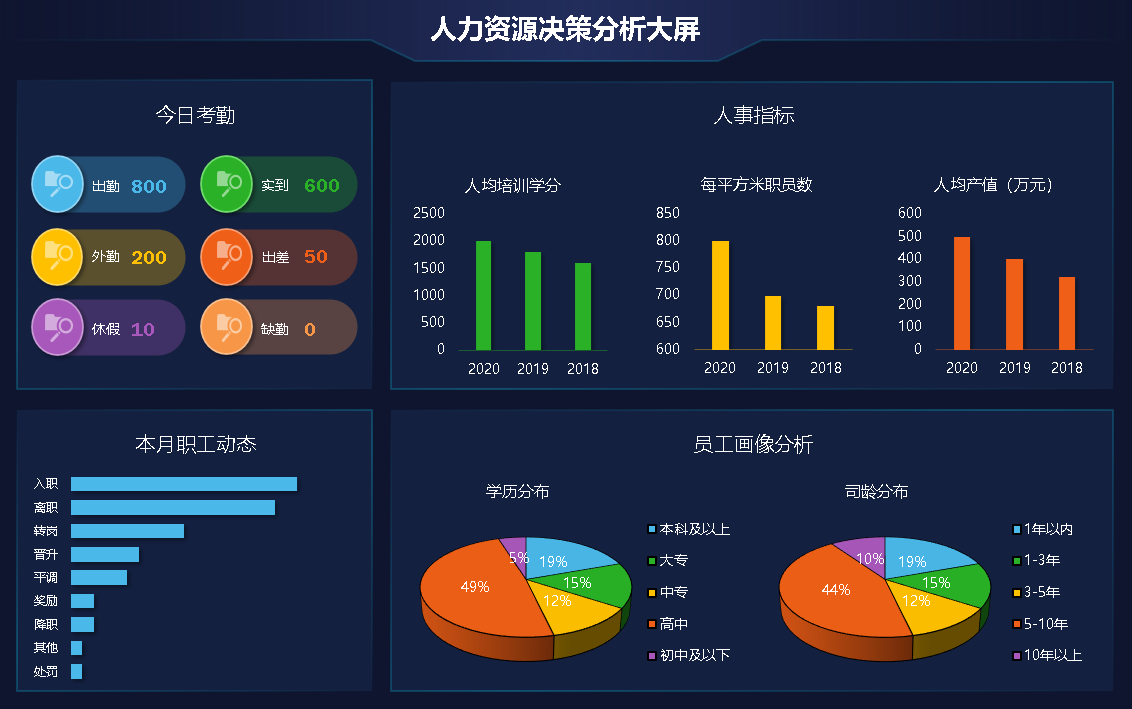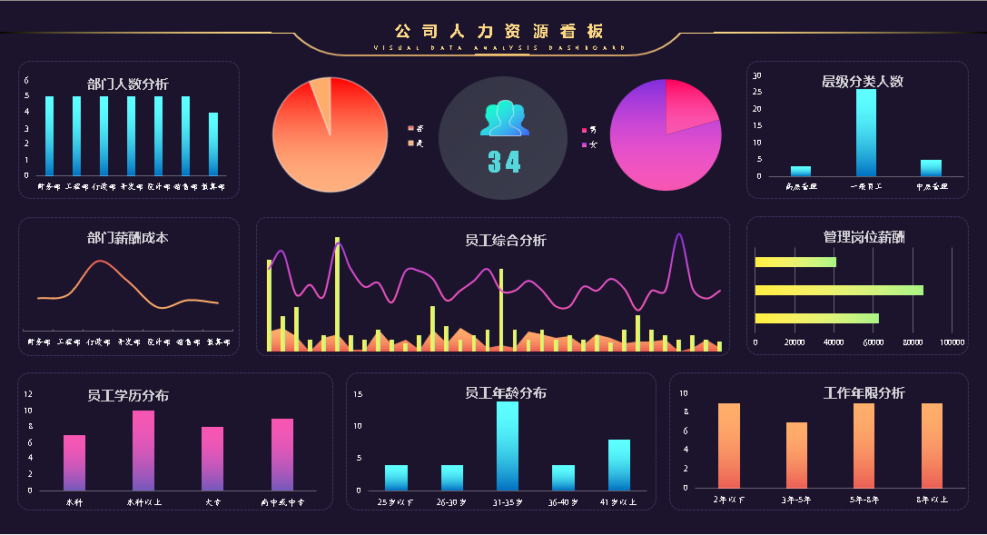 Excel数据可视化人力数据分析看板可视化大屏