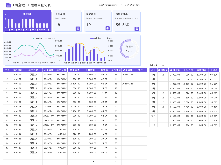关键词: Excel 工程项目 回款登记