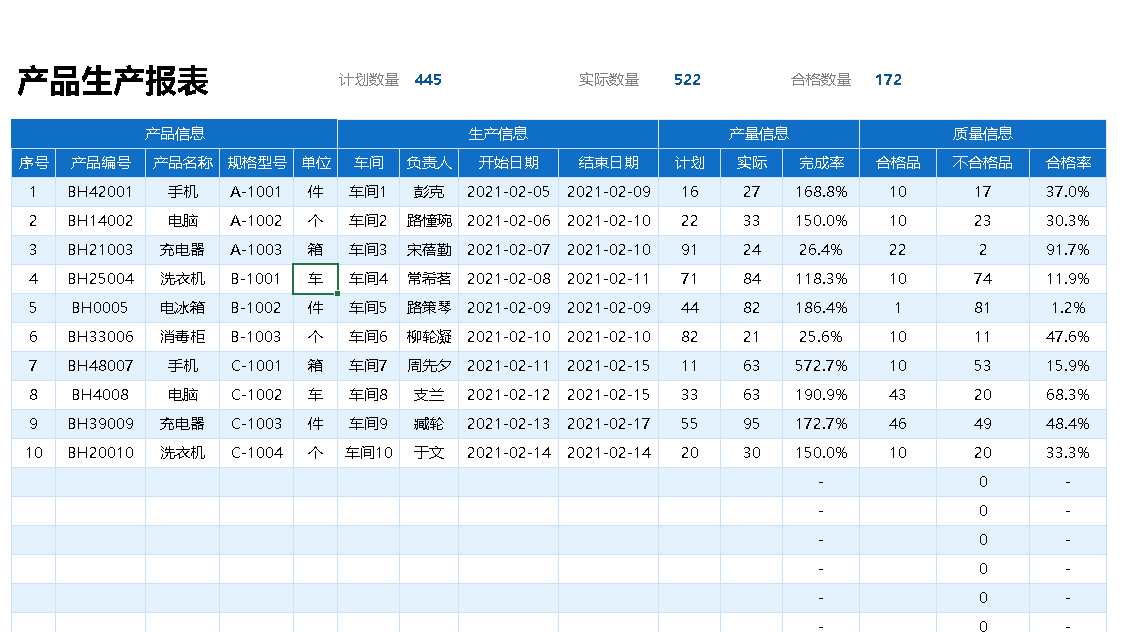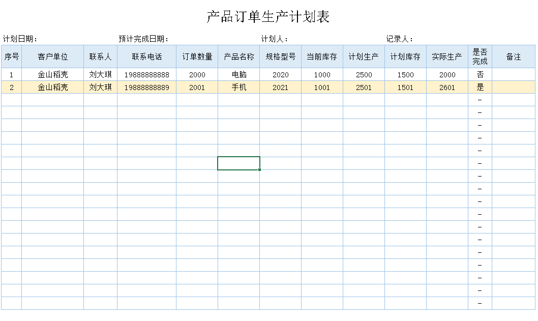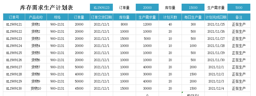工厂生产管理 Excel表格生产计划 排期报表订单产量统