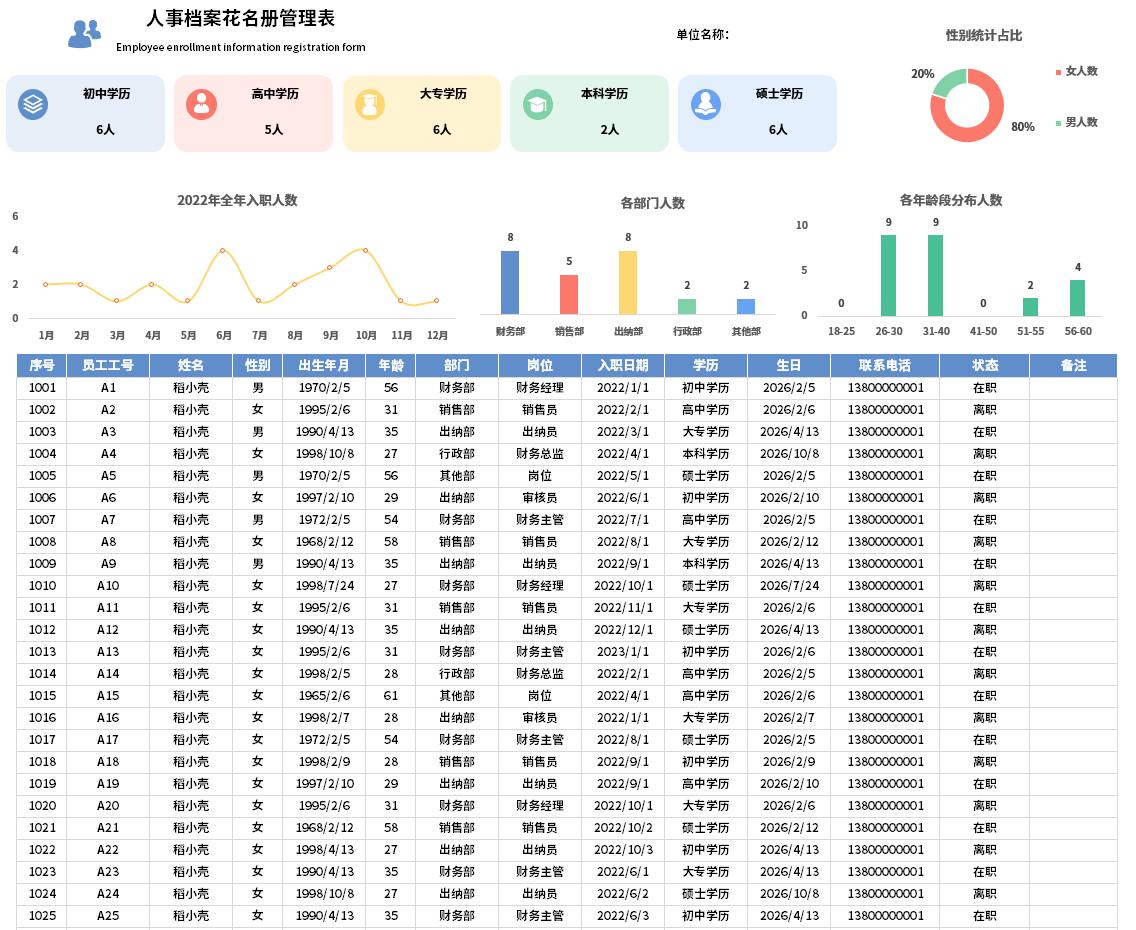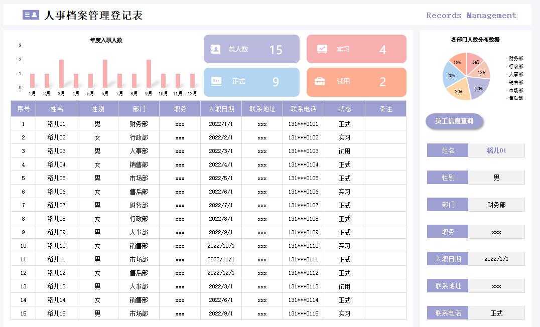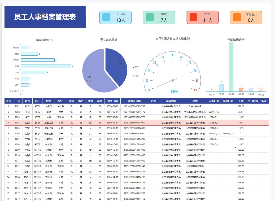 关键词: excel 人事 档案管理
