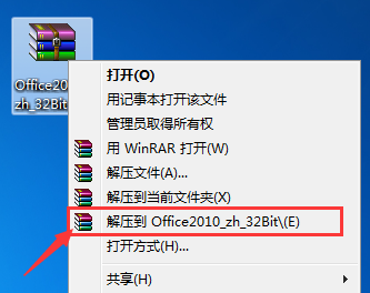 将下载好的Office安装包,右键解压到文件夹中。如下图: