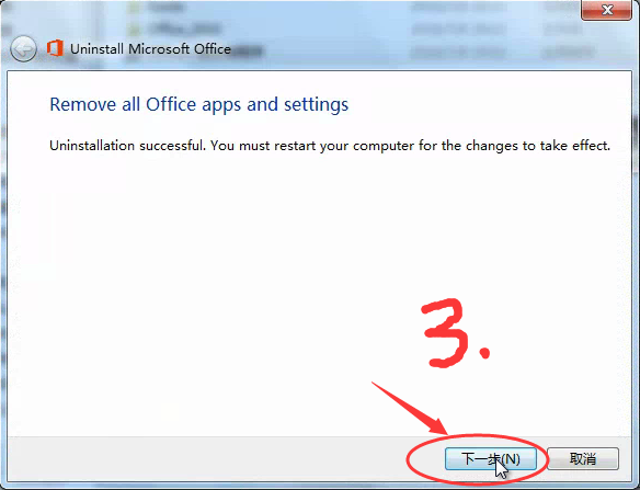 本步也将由程序自动完成,无需我们操作。 在重启前,程序将发出提示,如下: