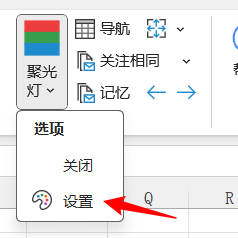 可以直接点击聚光灯功能开启/关闭,也可以通过聚光灯下拉选项进行开启或关闭聚光灯功能,点击设置可以进入聚光灯选项设置