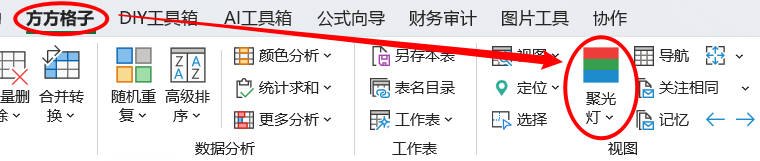 1.点击方方格子> 视图 >聚光灯