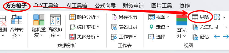 方方格子的导航功能,能够实现多工作簿、工作表的快速切换、查找、删除和新建。通过清晰的菜单、分类和路径指引,提升操作效率。