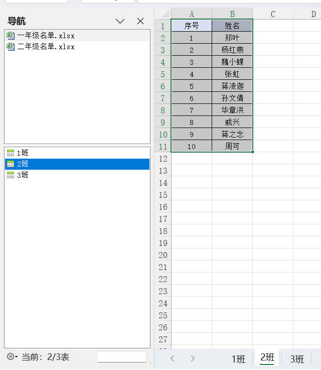 2.开启后可以在左侧导航功能面板快速切换工作簿工作表