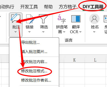 1.点击DIY工具箱> 对象专题 >批注>修改批注格式…