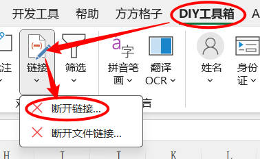 1.点击DIY工具箱> 对象专题 >链接>断开链接…