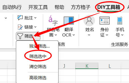 2.点击DIY工具箱> 对象专题 >筛选>筛选选中
