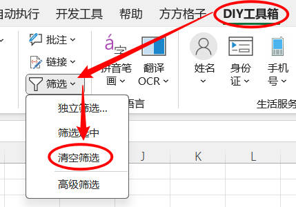 2.点击DIY工具箱> 对象专题 >筛选>清空筛选