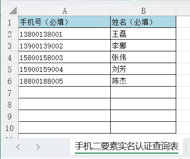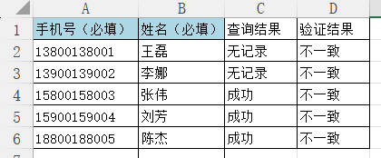 1.本功能支持批量查询手机二要素认证信息