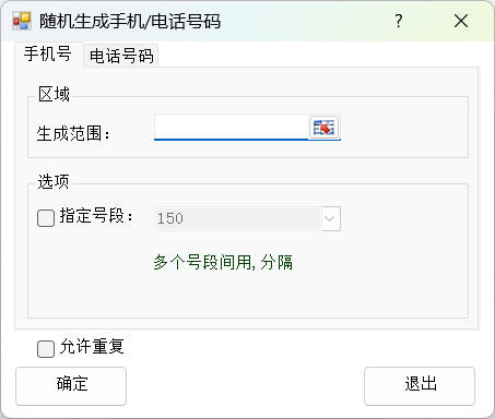 提示:支持生成7位或8位的电话号码