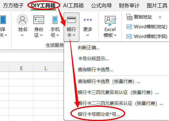 1.点击DIY工具箱> 生活服务 >银行卡>银行卡号部分变星号…