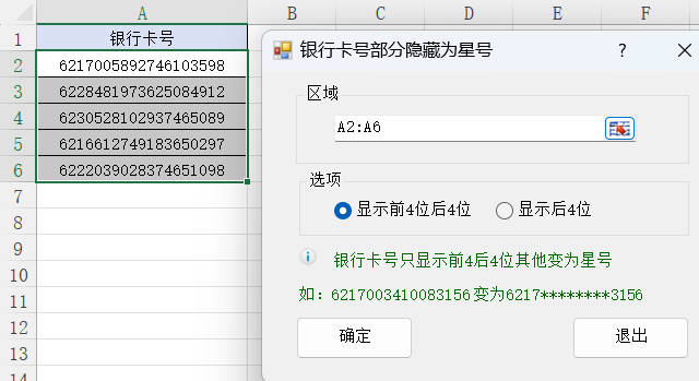 银行卡号部分变星号是隐私脱敏常用功能,支持显示前4位后4位或只显示后4位,中间替换为星号。满足内部预览、对外分享等不同隐私保护需求。