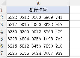 2. 选择需处理的卡号区域A2:A7,设置分段符号(默认空格,可按需修改),然后点击确定按钮