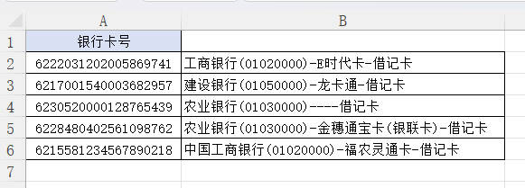 银行卡信息查询功能,可快速查询指定银行卡号对应的银行名称,助力高效核对银行卡归属信息,提升数据整理便捷性。