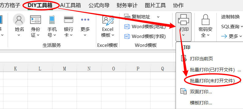 1.点击 DIY 工具箱 > 打印 > 批量打印 (未打开文件)…