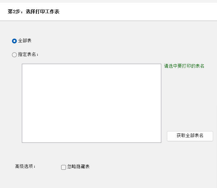 3.选择全部表进行打印,然后点击下一步按钮