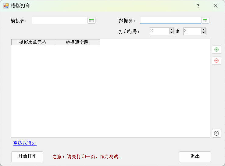 2.选择模版表和数据源表,设置需要打印的数据行2到4行