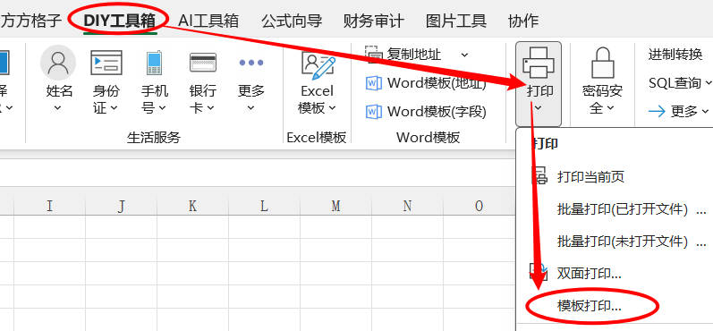 1.点击 DIY 工具箱 > 打印 > 模版打印…