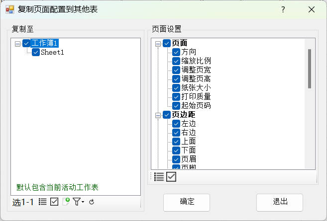 复制页面配置功能,可快速将当前工作表的页面大小、方向、页边距、页眉页脚、打印区域等打印参数,一键复制到其他工作表或工作簿。无需重复手动设置,提升批量打印前的排版效率。