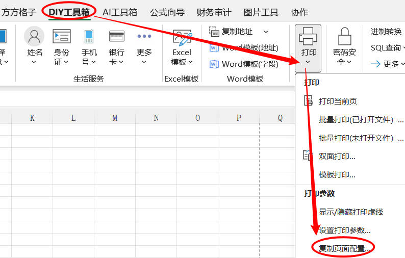 1.点击 DIY 工具箱 > 打印 > 复制页面配置…