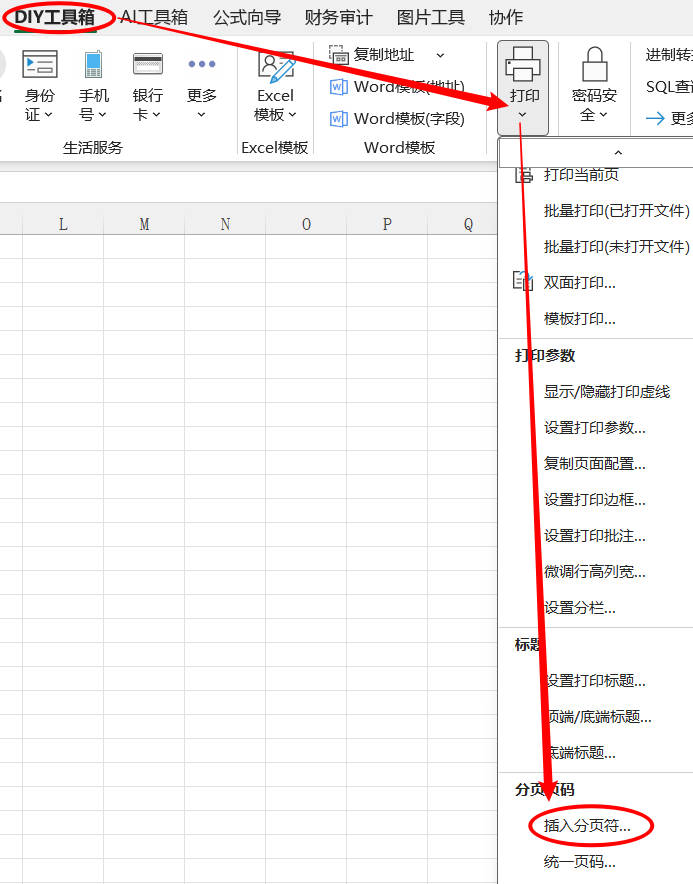 1.点击 DIY 工具箱 > 打印 > 插入分页符…