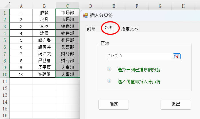 (二)按类别插入分页符