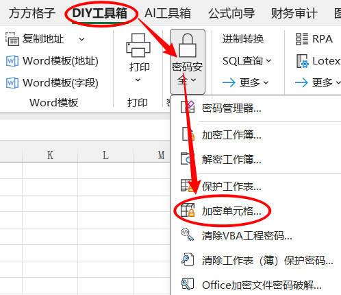 1.点击 DIY 工具箱 > 密码安全 > 加密单元格…