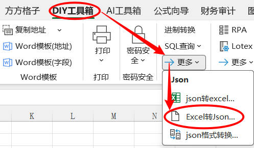 1.点击 DIY 工具箱 > 开发者专题> 更多 >Excel转Json…