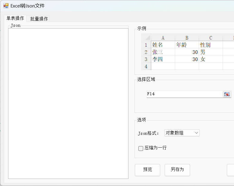 3.得到预览结果(可点击另存按钮保存为Json文件)