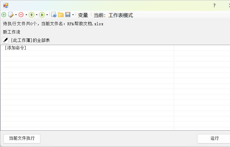扩展:功能上方功能区,可新增命令、保存/打开工作流,同时支持修改变量及切换工作模式