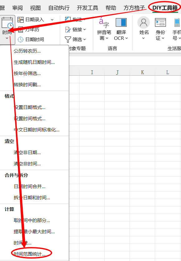 1.点击 DIY工具箱> 时间专题 > 时间 >时间范围统计…
