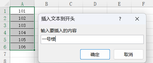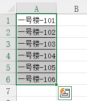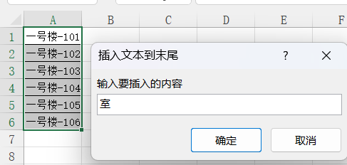 1.选择需要插入文本的区域A1:A6