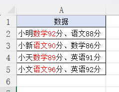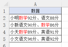 2.范围选择A2:A5,选择指定文本:数学,标记字体颜色红色,然后点击确定按钮