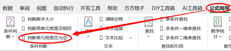 1.点击公式向导> 条件判断>判断单元格是否为空