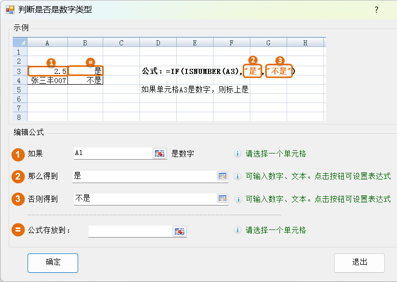 判断是否是数字类型功能,用于识别单元格内容是否属于数字类型,并生成公式。能够筛选出有效数值单元格,避免因文本干扰导致公式计算错误。