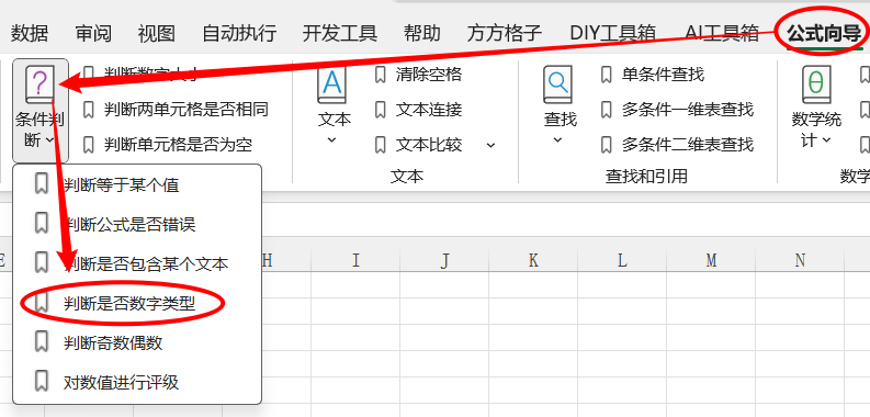 1.点击公式向导> 条件判断>判断是否是数字类型