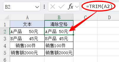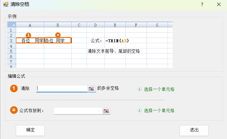 清除空格功能,用于移除内容中多余空格,并生成公式。可精准清理字符串首尾空格、压缩中间连续空格为单个,提升文本整洁度与可读性。