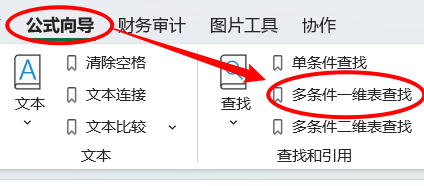 1.点击公式向导> 查找和引用 >多条件一维表查找