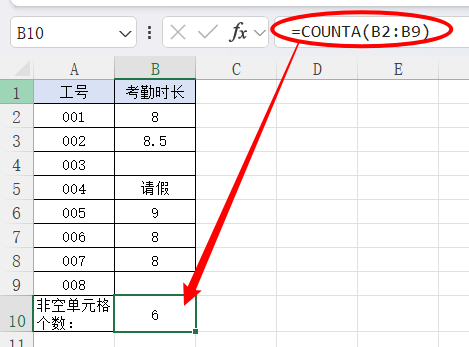 1. 选择功能的第三个选项卡 求非空单元格个数,计算B2:B9中非空单元格的个数,公式存放到B10,然后点击确定按钮