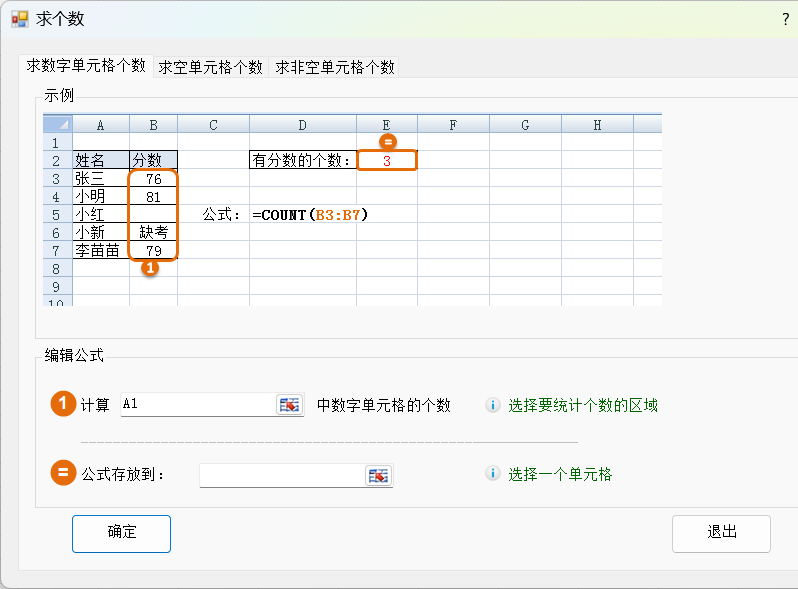 求个数功能,支持求数字单元格个数、空单元格个数和非空单元格个数,精准适配不同需求,操作简便,是数据整理中快速统计分布的常用工具。
