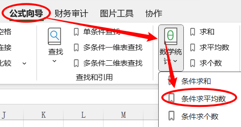 1.点击公式向导> 数学统计 >条件求平均数