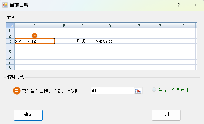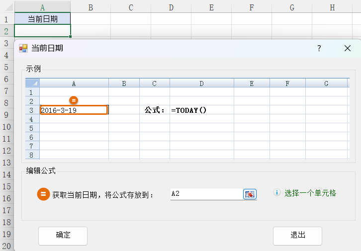 2.获取当前日期,将公式存放到A2单元格,然后点击确定按钮