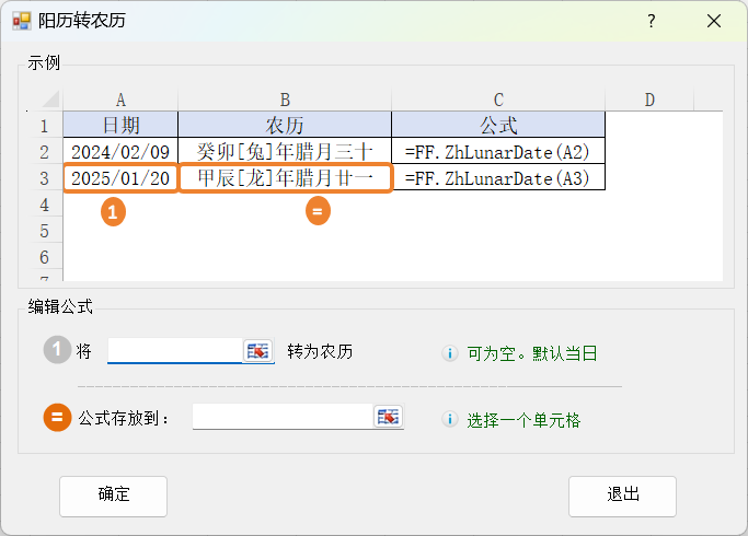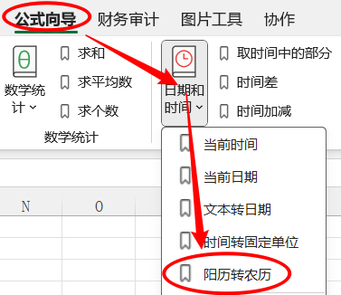 1.点击公式向导> 日期和时间 >阳历转农历