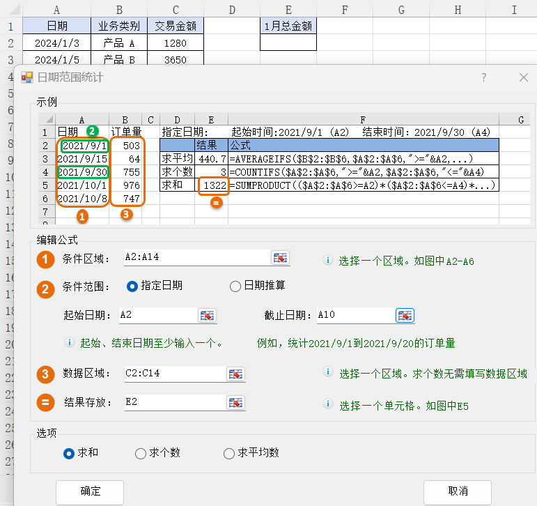 日期范围统计功能,支持自定义设置动态日期区间,可精准筛选指定时段数据。通过函数实现数据计数、求和等汇总。操作便捷、结果直观,助力高效统计时间维度数据。