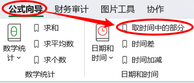 1.点击公式向导> 日期和时间 >取时间中的部分
